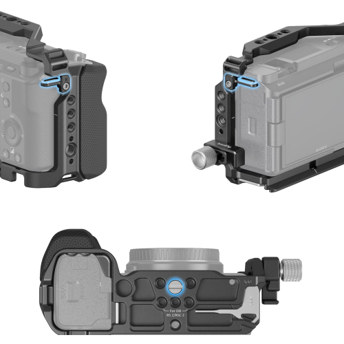 Er zijn meerdere bevestigingspunten voor accessoires; inclusief 1/4″-20 schroefgaten en ARRI 3/8″-16 positioneringsgaten voor SmallRig Top Handle 3765, Side Handle 2913, een bovenste ARRI 3/8″-16 positioneringsgat voor SmallRig Monitor Mount 2903, twee cold shoe houders voor de microfoon, LED-videolicht en een onderste QD-aansluiting voor de schouderriem.